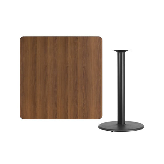 42'' Square Walnut Laminate Table Top with 24'' Round Table Height Base