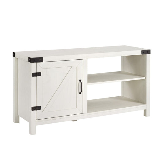 44" Asymmetrical Barn Door Farmhouse TV Stand - Brushed White