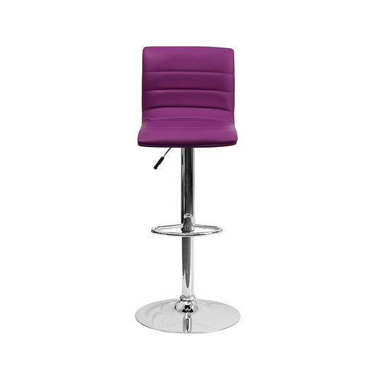 Modern Purple Vinyl Adjustable Bar Stool with Back, Counter Height Swivel Stool with Chrome Pedestal Base