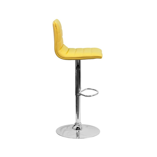 Modern Yellow Vinyl Adjustable Bar Stool with Back, Counter Height Swivel Stool with Chrome Pedestal Base