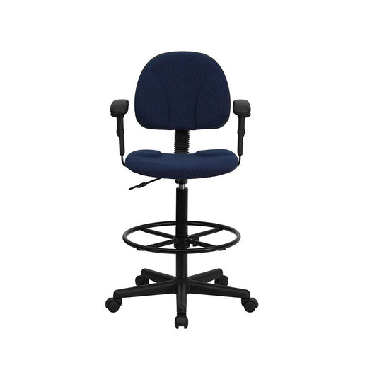 Navy Blue Patterned Fabric Drafting Chair with Adjustable Arms (Cylinders: 22.5''-27''H or 26''-30.5''H)