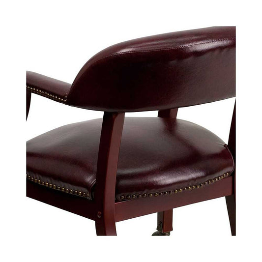 Oxblood Vinyl Luxurious Conference Chair with Accent Nail Trim and Casters