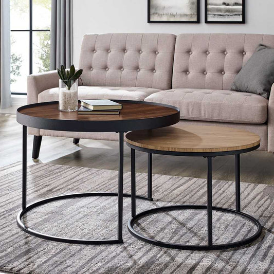 Pamela 30" Two-Tone Nesting Coffee Tables - Dark Walnut/English Oak