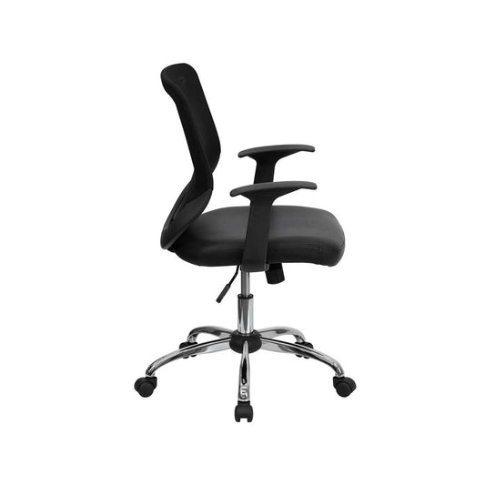 Mid-Back Black Mesh Tapered Back Swivel Task Office Chair with LeatherSoft Seat, Chrome Base and T-Arms