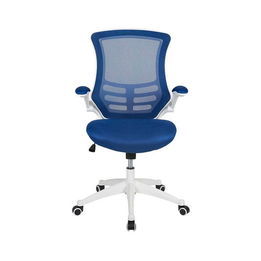 Mid-Back Blue Mesh Swivel Ergonomic Task Office Chair with White Frame and Flip-Up Arms