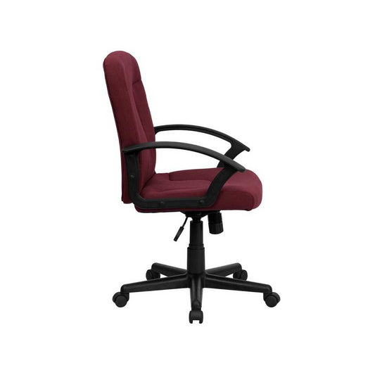 Mid-Back Burgundy Fabric Executive Swivel Office Chair with Nylon Arms