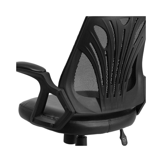 Mid-Back Designer Black Mesh Swivel Task Office Chair with LeatherSoft Seat and Open Arms