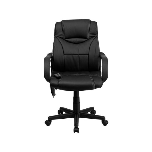 Mid-Back Ergonomic Massaging Black LeatherSoft Executive Swivel Office Chair with Arms
