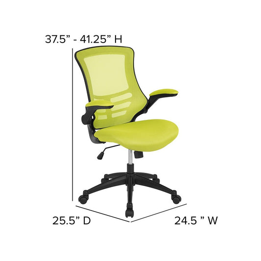 Mid-Back Green Mesh Swivel Ergonomic Task Office Chair with Flip-Up Arms