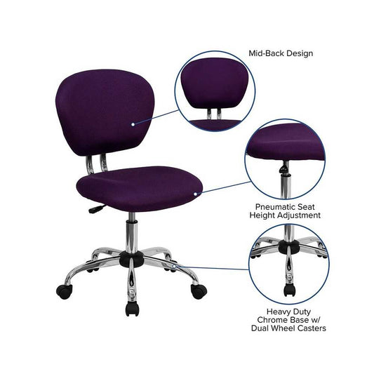 Mid-Back Purple Mesh Padded Swivel Task Office Chair with Chrome Base