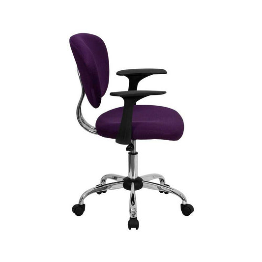 Mid-Back Purple Mesh Padded Swivel Task Office Chair with Chrome Base and Arms