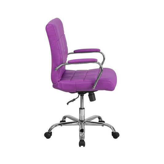 Mid-Back Purple Vinyl Executive Swivel Office Chair with Chrome Base and Arms