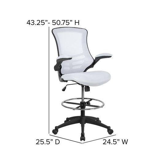 Mid-Back White Mesh Ergonomic Drafting Chair with Adjustable Foot Ring and Flip-Up Arms