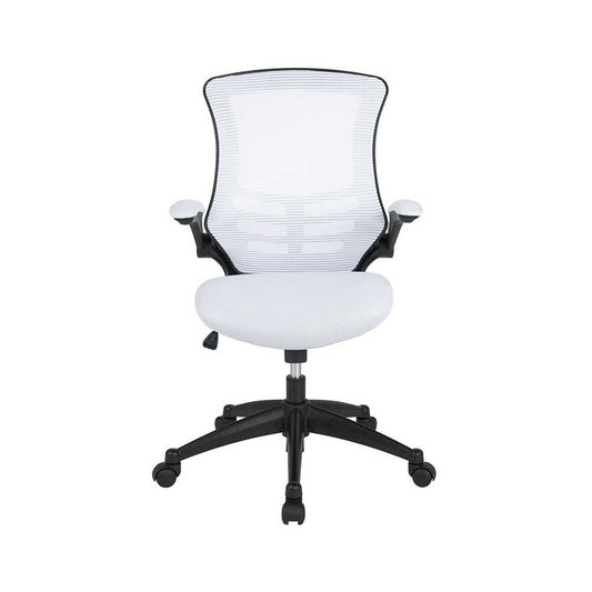 Mid-Back White Mesh Swivel Ergonomic Task Office Chair with Flip-Up Arms