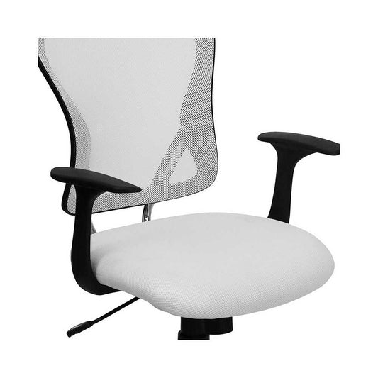 Mid-Back White Mesh Swivel Task Office Chair with Chrome Base and Arms