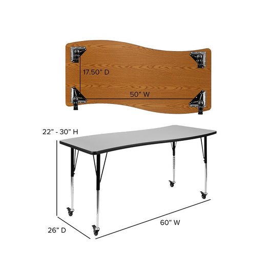 Mobile 26"W x 60"L Rectangular Wave Collaborative Gray Thermal Laminate Activity Table - Height Adjustable Short Legs