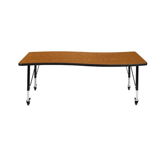 Mobile 26"W x 60"L Rectangular Wave Collaborative Oak Thermal Laminate Activity Table - Standard Height Adjustable Legs
