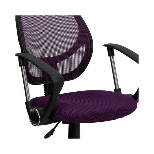 Low Back Purple Mesh Swivel Task Office Chair with Arms