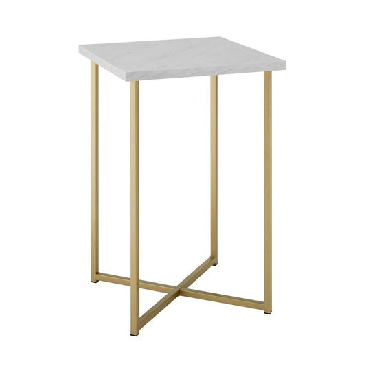 Luxe Modern Glam Square Side Table - Faux White Marble/Gold