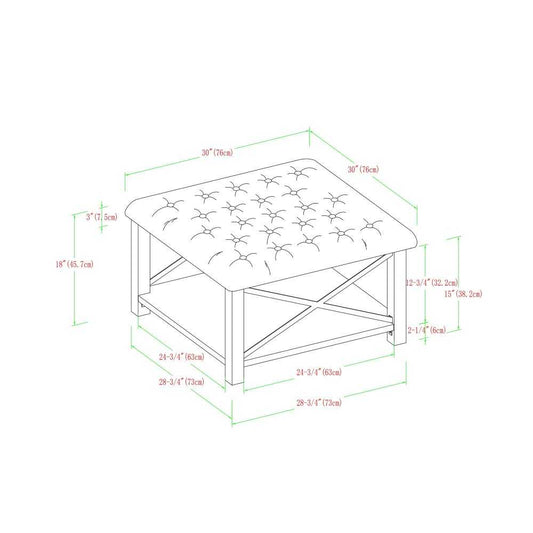 Marcus 30" Farmhouse Tufted Ottoman - Blue