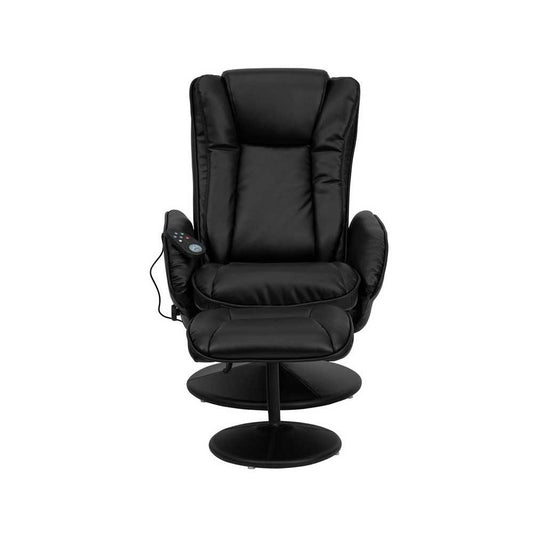Massaging Heat Controlled Adjustable Recliner and Ottoman with Wrapped Base in Black LeatherSoft