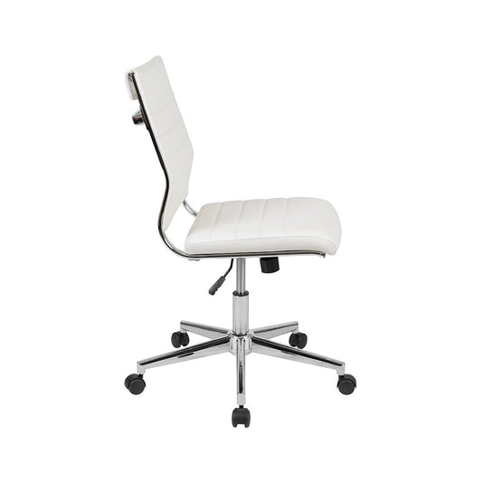 Mid-Back Armless White LeatherSoft Contemporary Ribbed Executive Swivel Office Chair