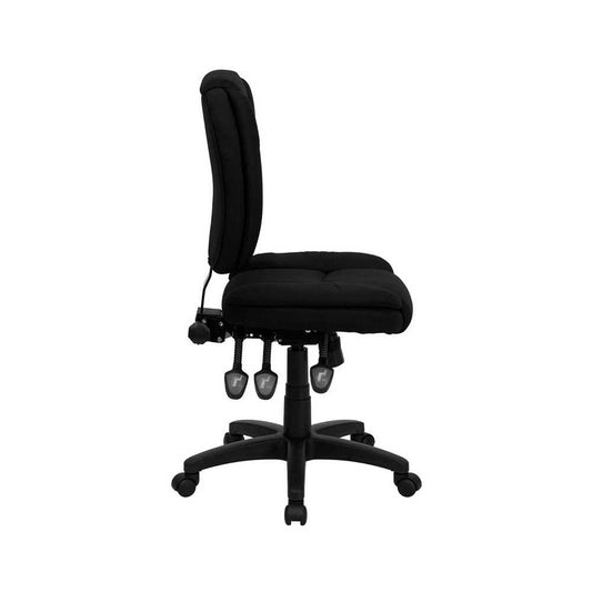Mid-Back Black Fabric Multifunction Swivel Ergonomic Task Office Chair with Adjustable Lumbar Support