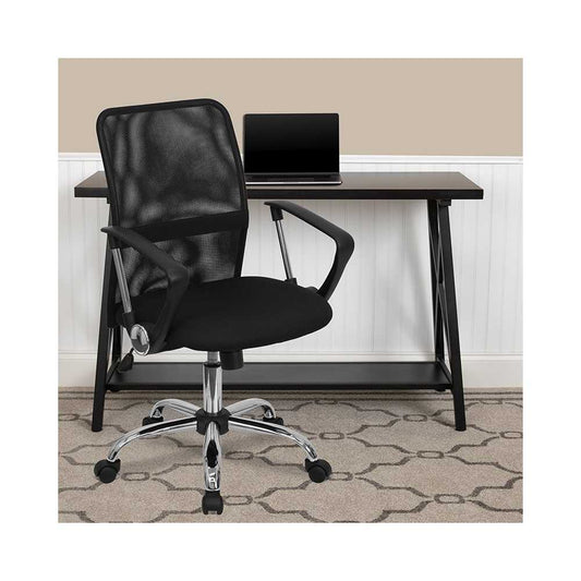 Mid-Back Black Mesh Swivel Task Office Chair with Lumbar Support Band and Arms