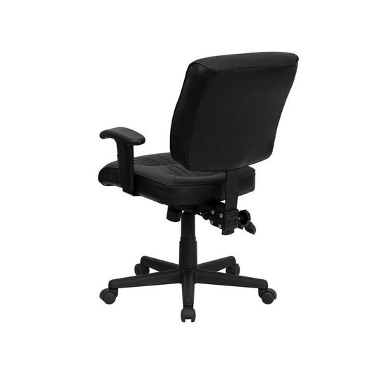 Mid-Back Black LeatherSoft Multifunction Swivel Ergonomic Task Office Chair with Adjustable Arms