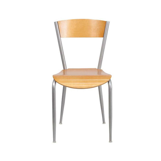 Invincible Series Silver Metal Restaurant Chair - Natural Wood Back & Seat