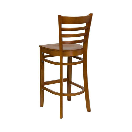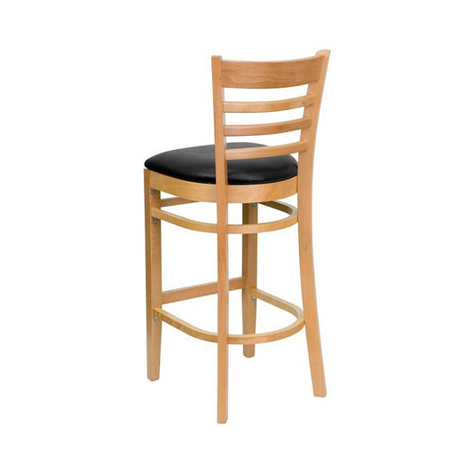 Ladder Back Natural Wood Restaurant Barstool - Black Vinyl Seat