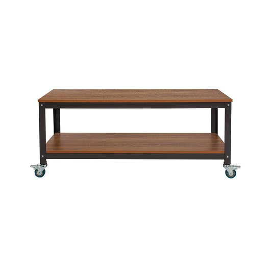 Livingston Collection TV Stand in Brown Oak Wood Grain Finish with Metal Wheels