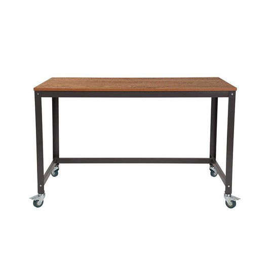 Livingston Collection Computer Table and Desk in Brown Oak Wood Grain Finish with Metal Wheels