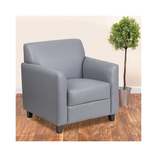 Gray LeatherSoft Guest Chair with Tablet Arm, Front Wheel Casters and Cup Holder