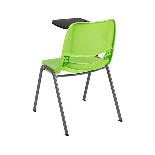 Green Ergonomic Shell Chair with Right Handed Flip-Up Tablet Arm