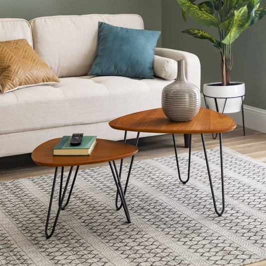 Guitar Pick Hairpin Leg Mid Century Modern Nesting Coffee Table Set - Walnut