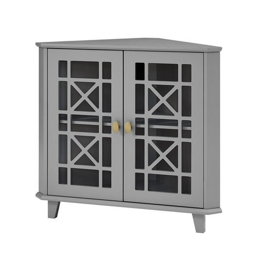 Gwen Fretwork Corner Accent Cabinet - Gray
