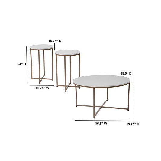 Hampstead Collection 3 Piece Coffee and End Table Set in White with Matte Gold Frames
