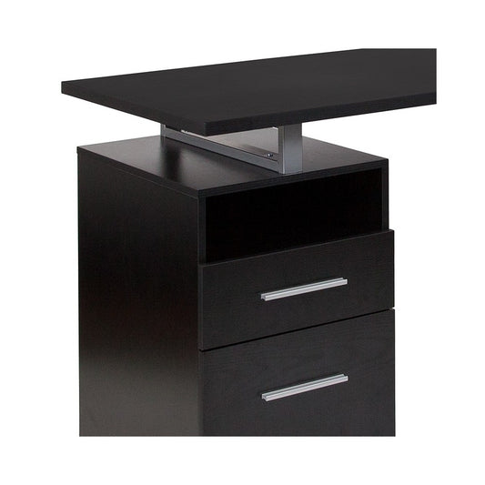Harwood Dark Ash Wood Grain Finish Computer Desk with Two Drawers and Silver Metal Frame