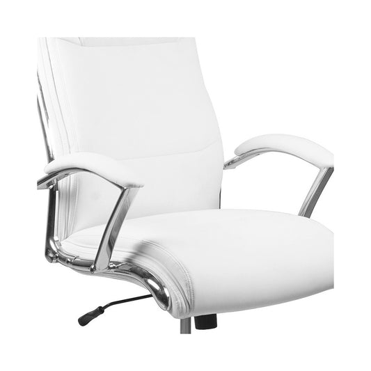 High Back Designer White LeatherSoft Smooth Upholstered Executive Swivel Office Chair with Chrome Base and Arms
