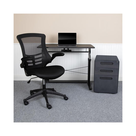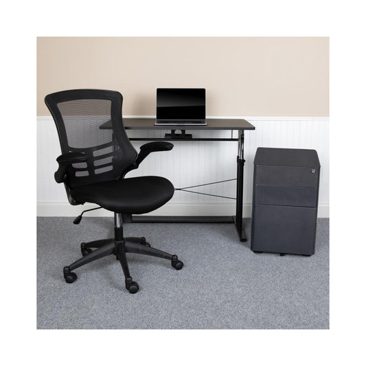 Flash Furniture Stiles Black Desk, Chair, Cabinet Set BLN-NAN21APX5L-BK-GG