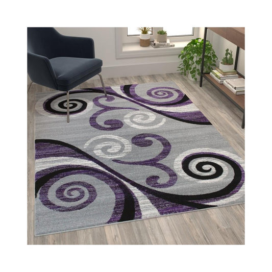 Flash Furniture Valli Collection Purple 5x7 Modern Area Rug OKR-RG1100-57-PU-GG