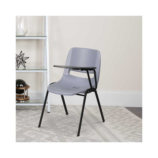 Gray Ergonomic Shell Chair with Left Handed Flip-Up Tablet Arm