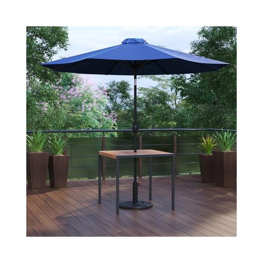 Flash Furniture Lark Faux Teak Patio Table-Umbrella XU-DG-UH8100-UB19BNV-GG