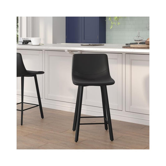 Flash Furniture Caleb 2PK 24" Black Leather Stools CH-212069-24-BK-GG