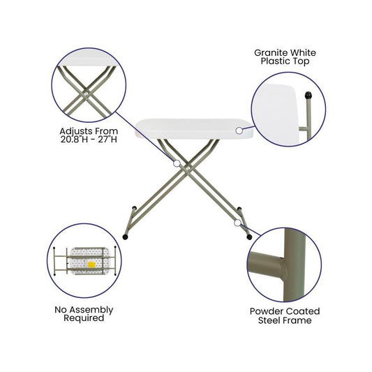 Flash Furniture Elon White Folding Adjustable Table DAD-YCZ-66X-GW-GG