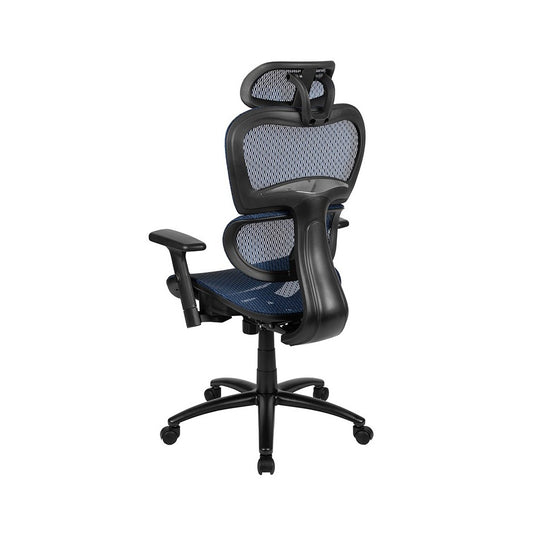 Ergonomic Mesh Office Chair with 2-to-1 Synchro-Tilt, Adjustable Headrest, Lumbar Support, and Adjustable Pivot Arms in Blue