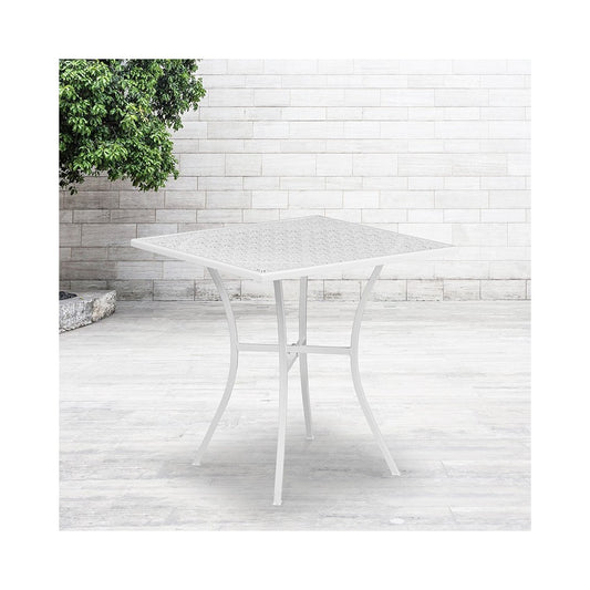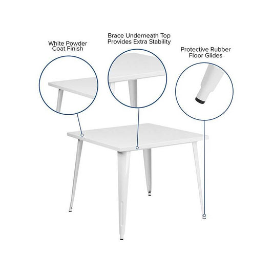 Commercial Grade 35.5" Square White Metal Indoor-Outdoor Table
