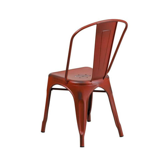 Commercial Grade Distressed Kelly Red Metal Indoor-Outdoor Stackable Chair