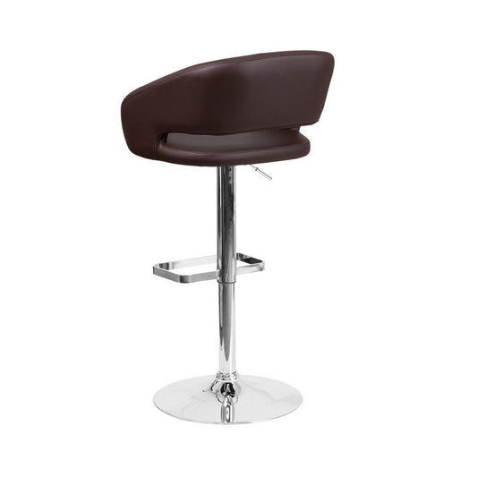 Contemporary Brown Vinyl Adjustable Height Barstool with Rounded Mid-Back and Chrome Base